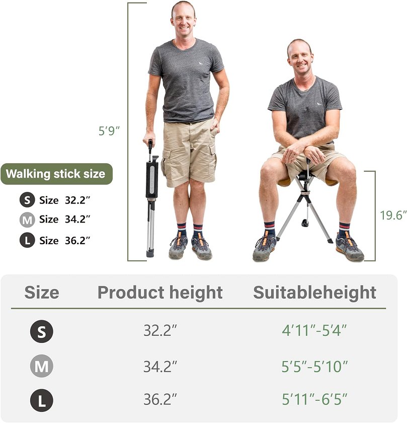STEP2GOLD Ta-Da Chair Series 2 Portable Walking Stick, Cane with Seat, Foldable Chair for Camping & Hiking - 33.2" - Black