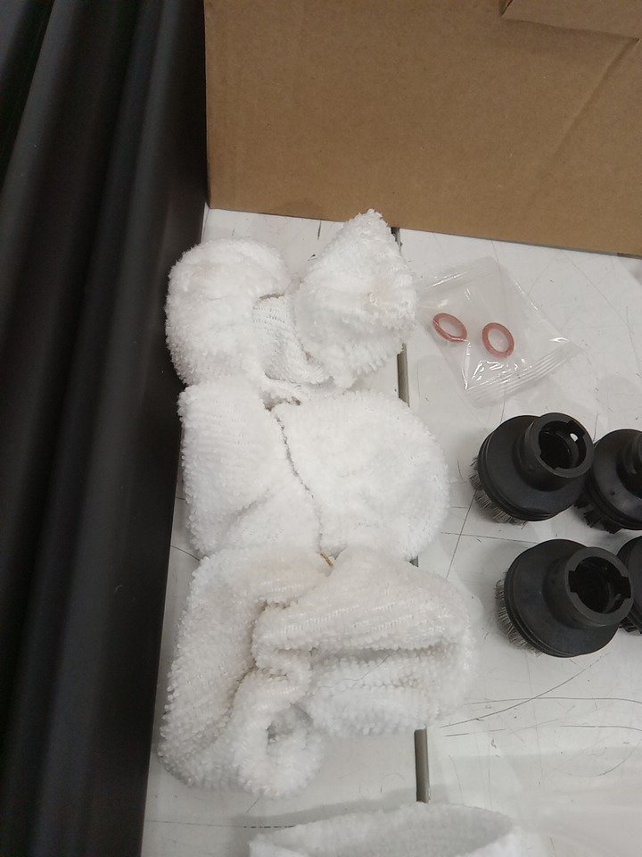 Some scuffs on the steamer and some of the clothes are dirty. Tested for power only.