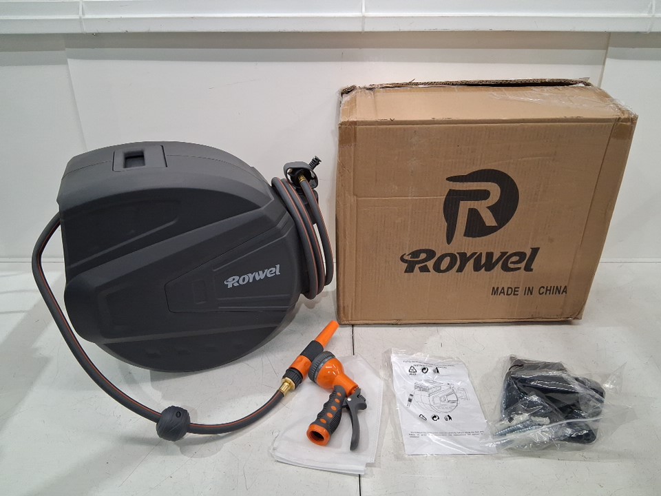 Roywel Wall-Mount Retractable Self-Rewind Slow Retraction 180° Pivot Bracket - 1/2" x 100FT (Model: RY-HR35100)