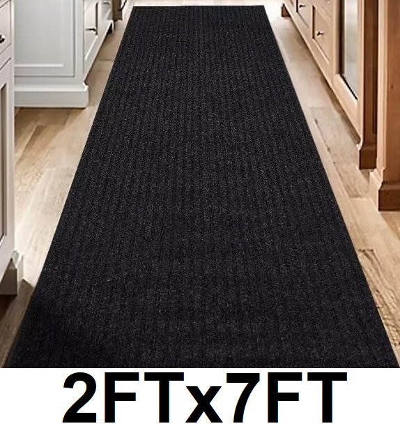gotohipi indoor/outdoor non-slip runner rug utility carpet - 2ft X 7Ft - black stripe