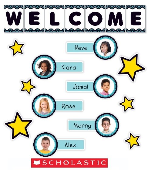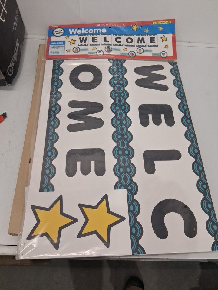 scholastic Bulletin Board Aqua Oasis Welcome decorations - blue/white