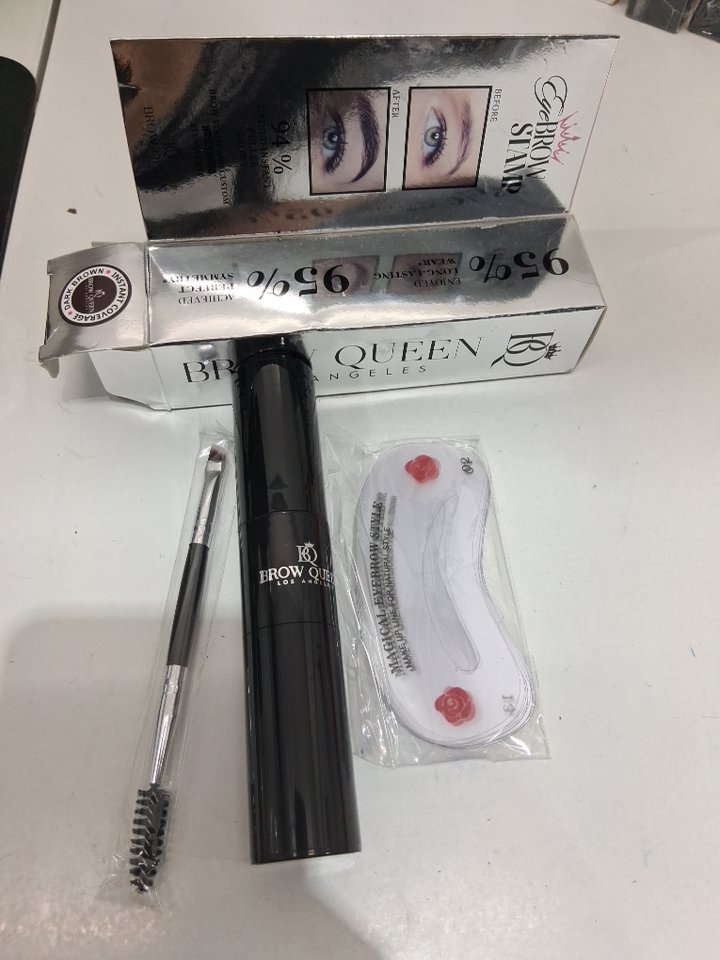 BROW QUEEN Eyebrow Stamp Kit Waterproof with Dual-Color Eyebrow Powder Stamp 24 Shaping Guide Templates - Dark Brown