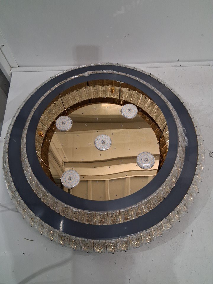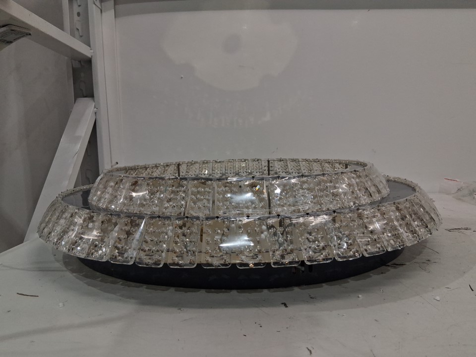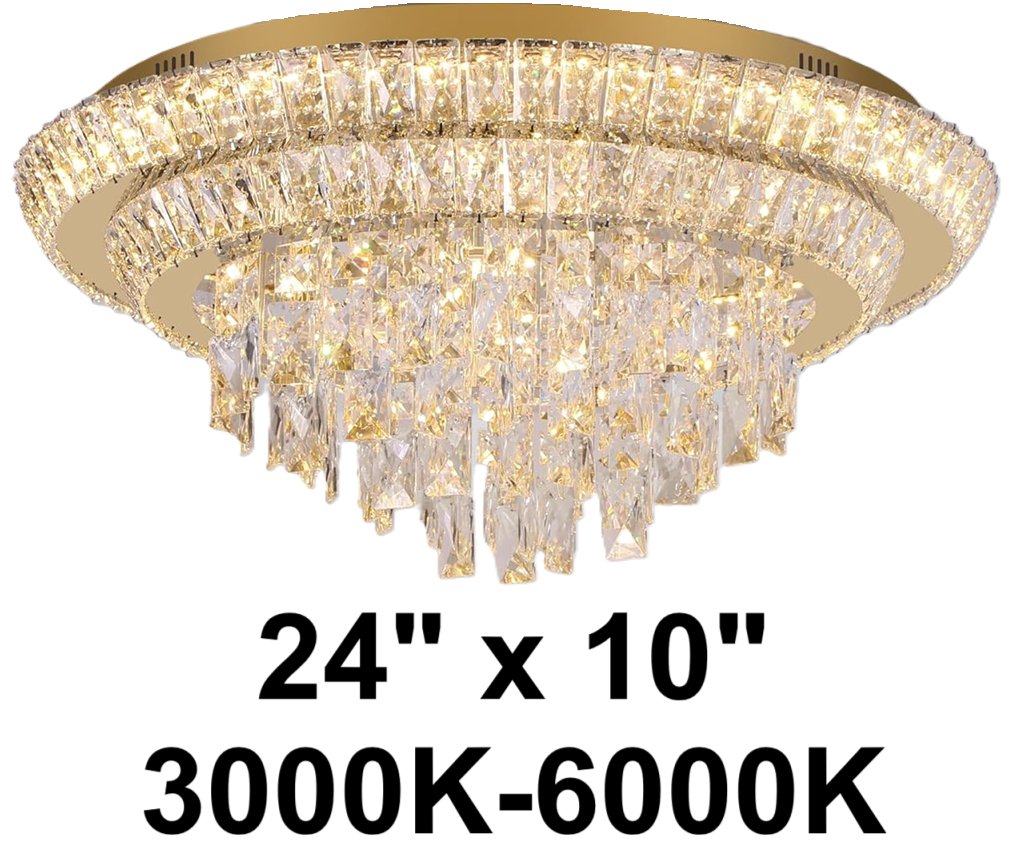 ABISGPT Dimmable Flush Mount Crystal Chandelier With Remote - 24" x 10" - 3000K-6000K (Model: A41-24IN-GD)