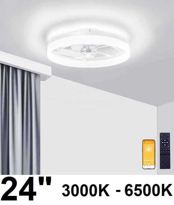 VOLISUN MODERN CEILING FAN WITH LIGHTS, REMOTE and 6 speeds - 3000K to 6500K - white (MODEL: 8223-600)