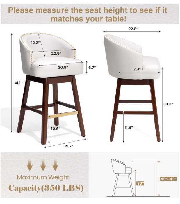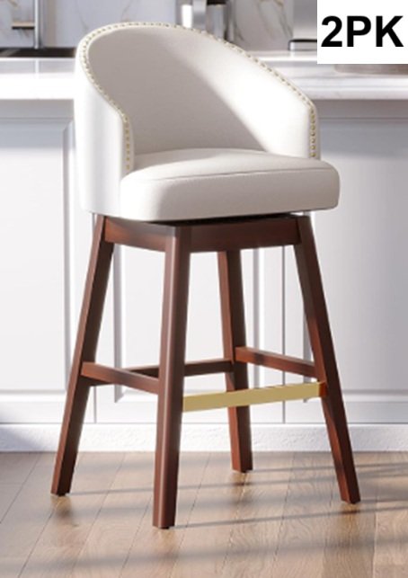 2PK PATIOHIT Faux Leather SWIVEL BAR STOOLS - 30" - IVORY WHITE (MODEL: ST501IVR-2)