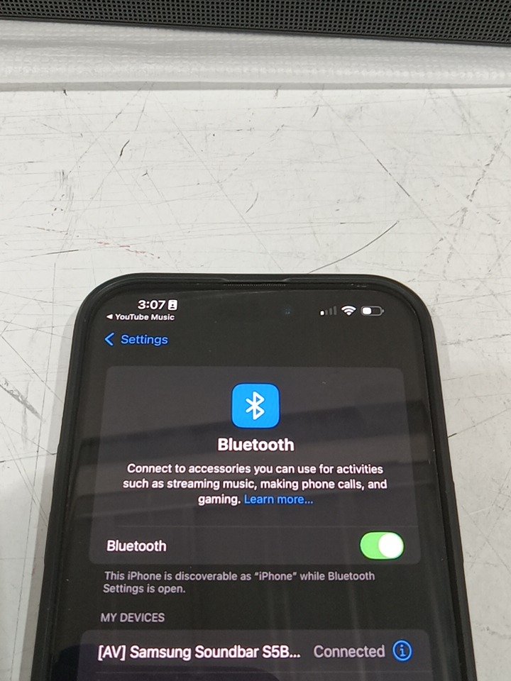 There are dust residue and minor scratch marks on the base from previous use. Tested for power and sound through Bluetooth connectivity. (Please see photos)