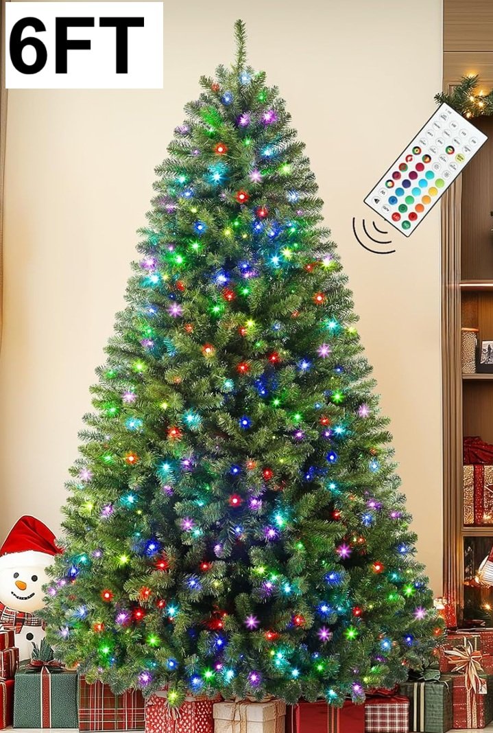 SHareconn Prelit Artificial Christmas Tree with Remote Control AND MULTICOLOR LED LIGHTS - 6FT - GREEN