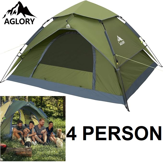 aglory waterproof dome camping tent with rainfly and mesh windows - 4-person - green - (model: g-4a-green)