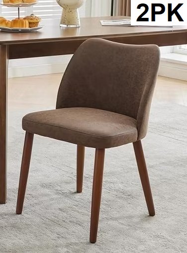 2PK Mid-Century Modern PU Upholstered Dining Chairs with Comfortable Padded Seat & Curved Backrest, Sturdy Wooden Legs and Durable Faux Leather Finish - Coffee Brown (Model: CY-25010)