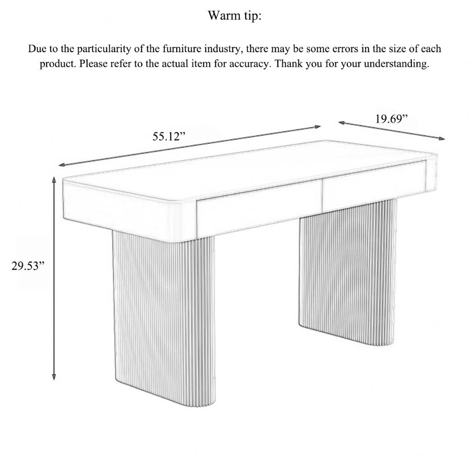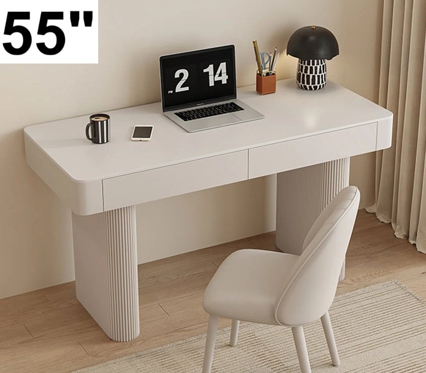 rite treasure sintered stone desk with iron legs - 55" x 20" x 30" - white