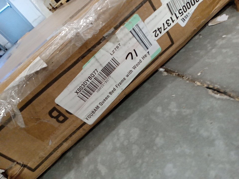 FOUBAM Bed Frame with Wood Headboard - Queen - Black / Walnut Brown - (Model: 912G-BK-RB)