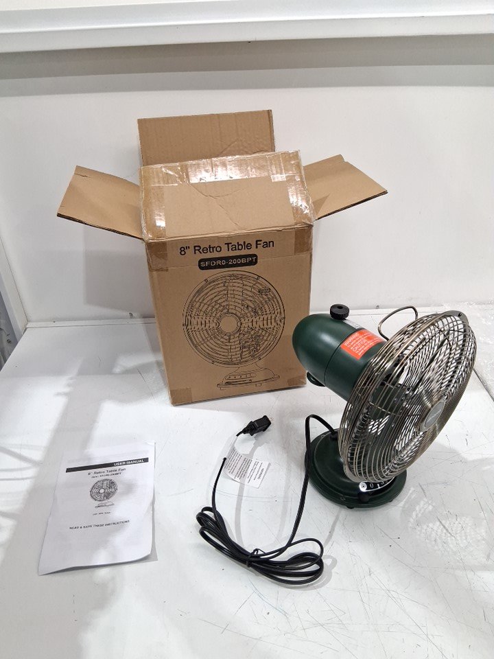 AMACOOL Oscillating Vintage Desk Fan with 3 Speed Settings - 8" - Green (Model: SFDR0-200BPT)