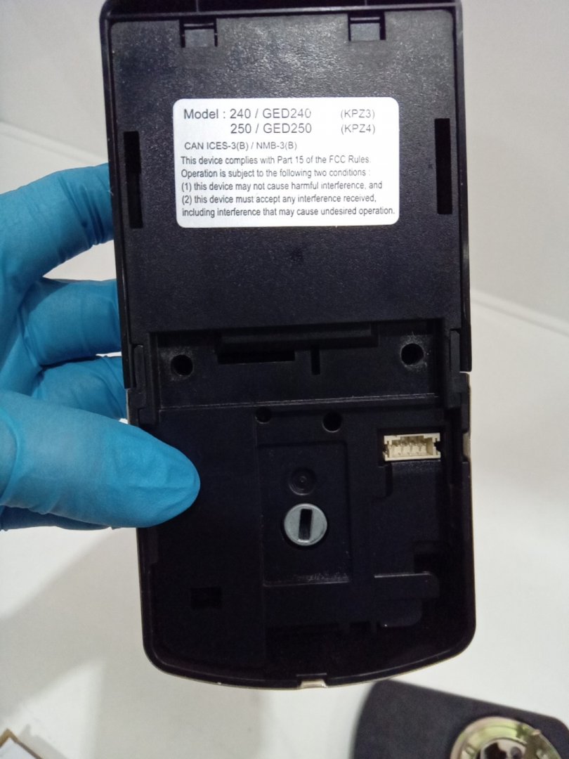 Markings from previous installation and scuffs on the indoor half from previous use.