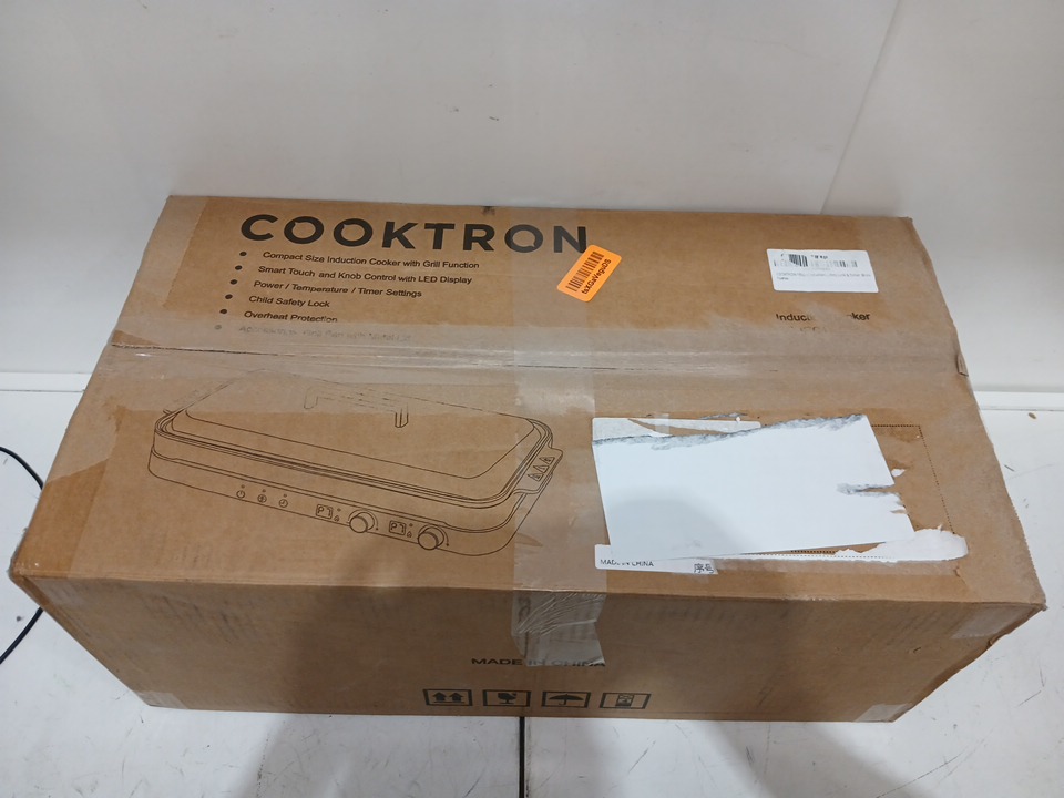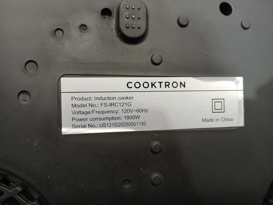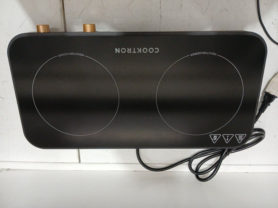cooktron double induction cooktop with griddle & lid - 1800w - black (model: fs-irc121g)