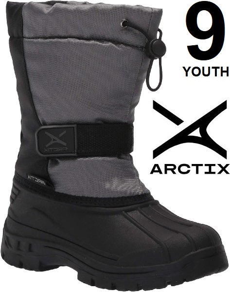 YOUTH ARCTIX Powder extreme weather classic fit machine washable Winter Boots - 9 toddler - steel grey / black (style: 20302-09-9)