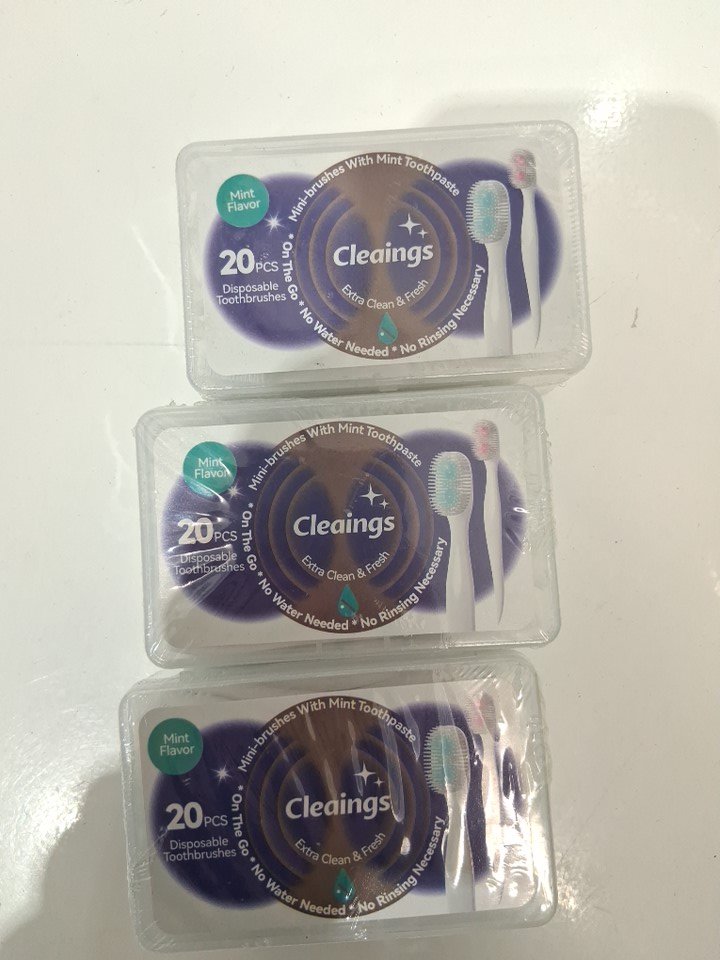 3(20pc) cleaings travel mini brushes with mint toothpaste - white