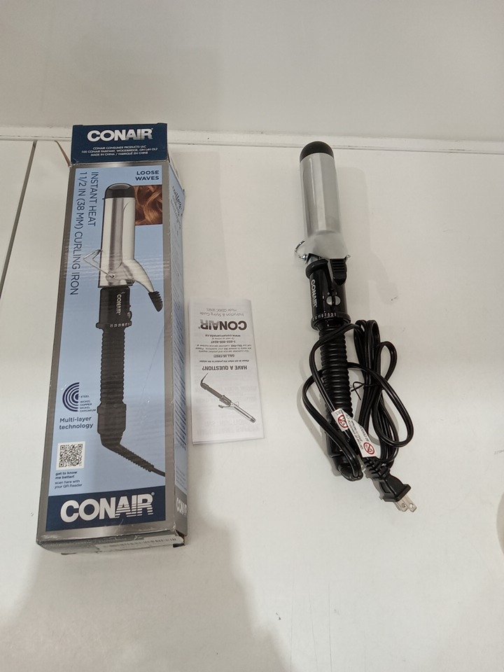 CONAIR INSTANT HEAT CERAMIC CURLING IRON FOR LOOSE WAVES - 1.5" - BLACK/SILVER (MODEL: CD89NC)
