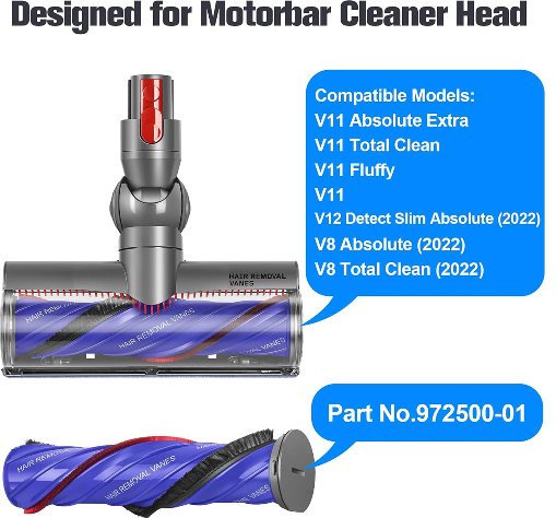 FUNTECK motorbar brush bar with End Cap for Dyson V8 V10 V11 V12 - Compatible with Part Number 972182-01 and 972162-01 (model: 972500-01