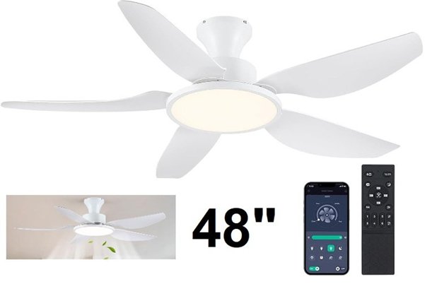 bykistok low profile quiet indoor ceiling fan with led light and remote and app control - 48" -white (model: 8308)