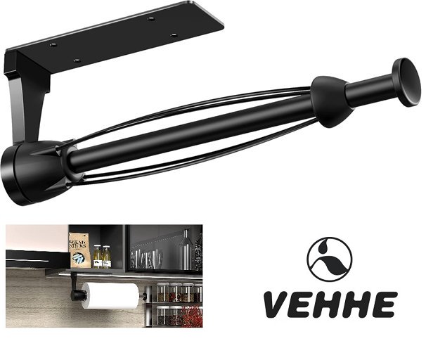 Vehhe Wall Mount Paper Towel Holder Under Cabinet with Ratchet System - 11.4''x3.6'' - black