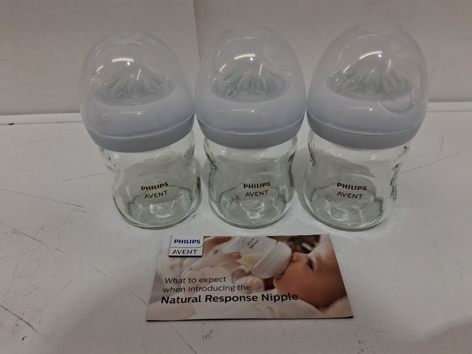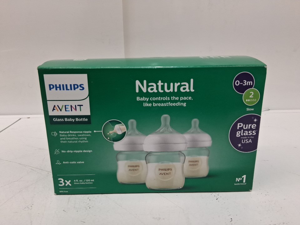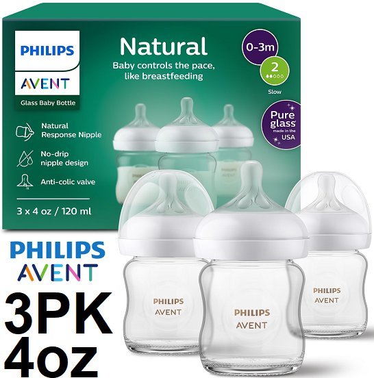 3PK PHILIPS AVENT NATURAL GLASS MADE WIDE-NECK BABY BOTTLE - 4OZ - 0M+ - FLOW 2