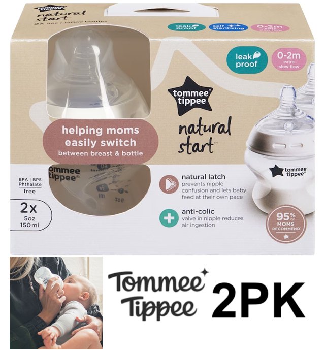 2PK tommee tippe natural start anti-colic baby feeding bottle - 5oz - (model: 66114226)