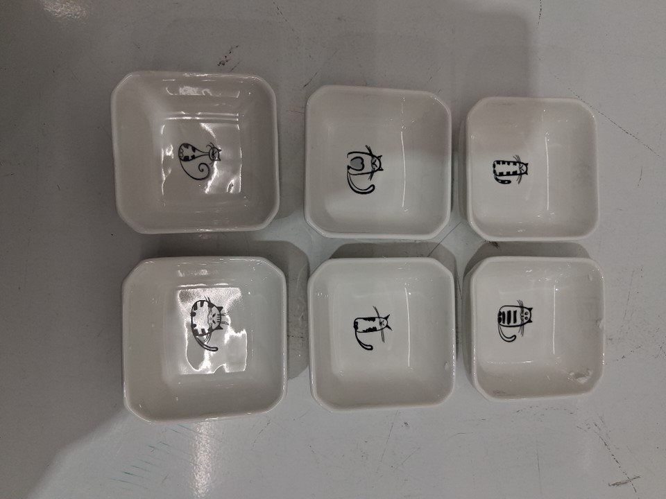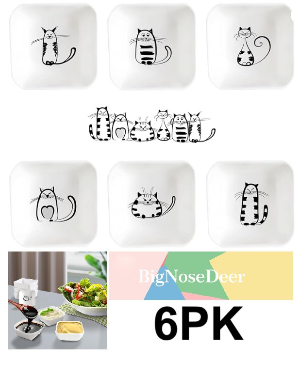 6PK bignosedeer super cute cat ceramic sauce dish- ceramic 2.8" diameter - white - (model: La129)