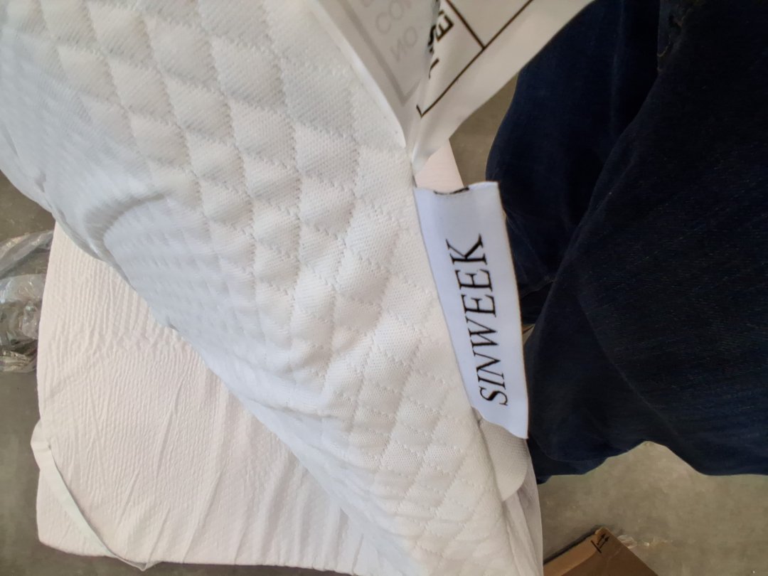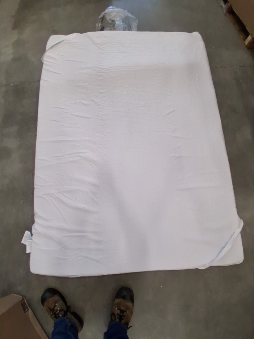 Small rip on bottom of the topper and dust on bottom from warehouse