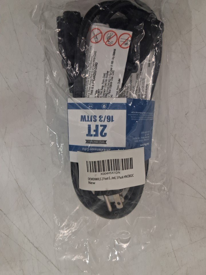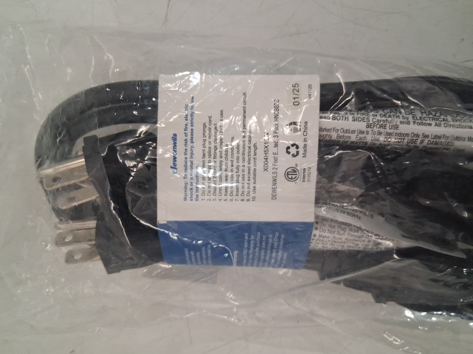 3PK DEWENWILS Heavy Duty Extension Cord - 2FT - BLACK