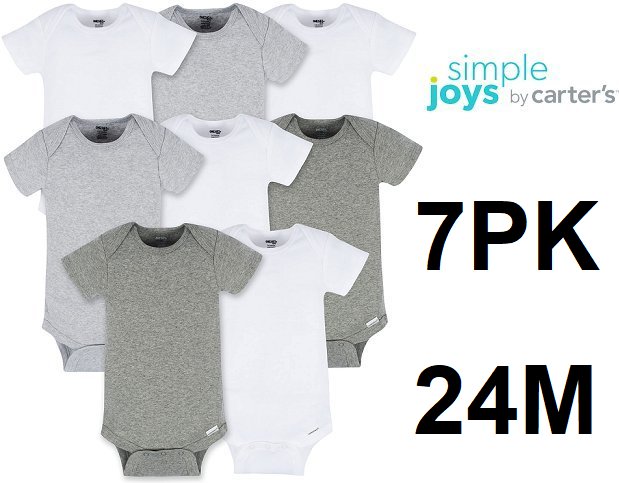 7PK INFANT SIMPLY JOYS BY CARTERS Short Sleeve Bodysuits- 24MONTHS - DARK GREY/GREY/WHITE