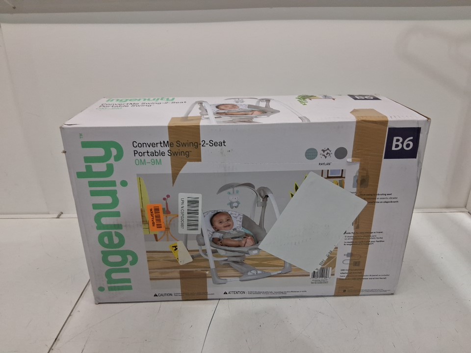INGENUITY CONVERTME SWING 2-SEAT, BATTERY-SAVING PORTABLE SWING - 0M-9M - RAYLAN GREY - (MODEL: 12189-ES)