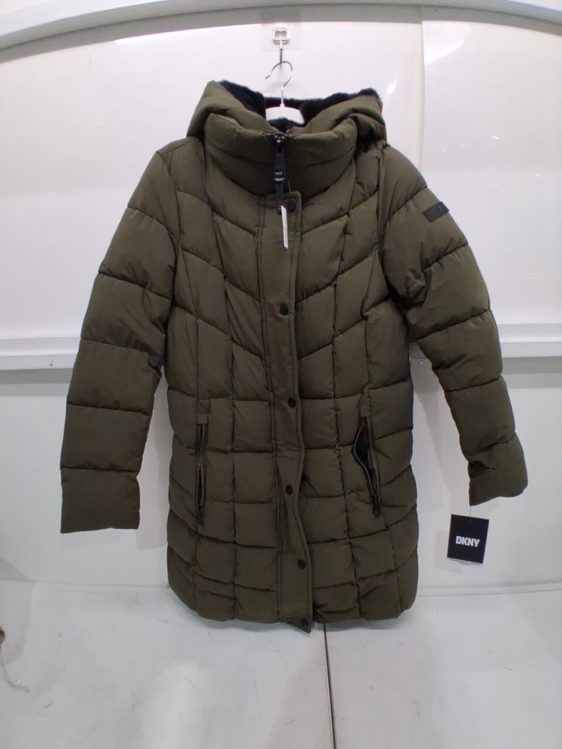Women's DKNY Bib-Front Long Puffer Jacket - Small - Deep Loden