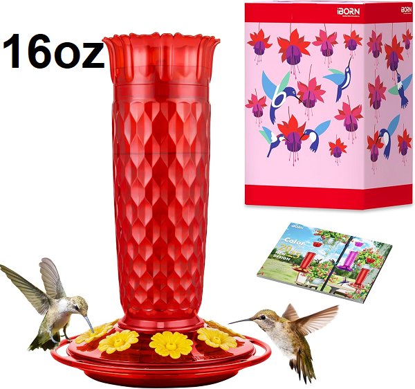 iborn Hummingbird Feeder with bee guard - 16oz - red honeycomb - (model:‎HB101-8-RED)