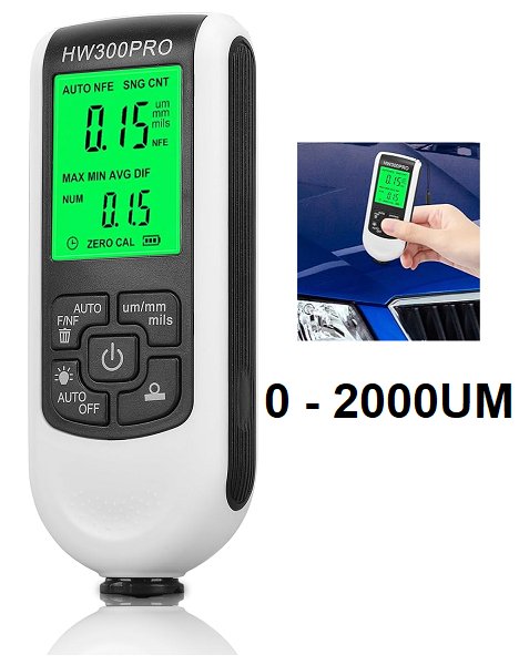 New Digital Coating Thickness Gauge, Ultra high Precision Probe or Automotive Paint Thickness - 0 to 2000UM - white/black - (model: hw300pro)