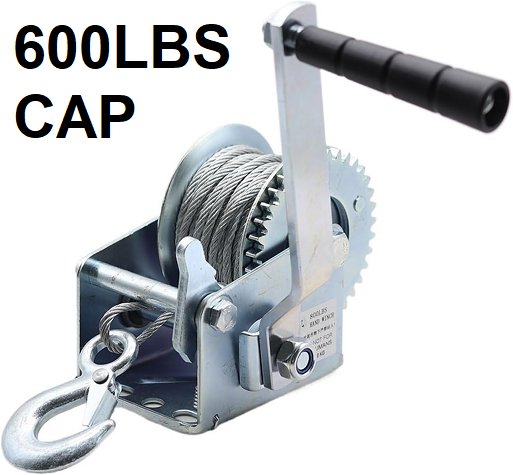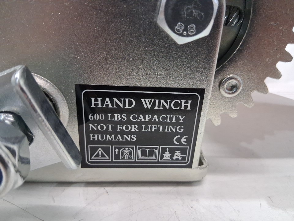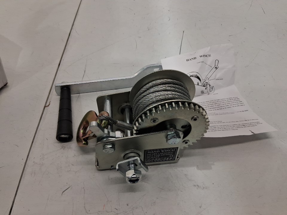 Manual hand crank cable winch - 600lbs cap - Silver/black