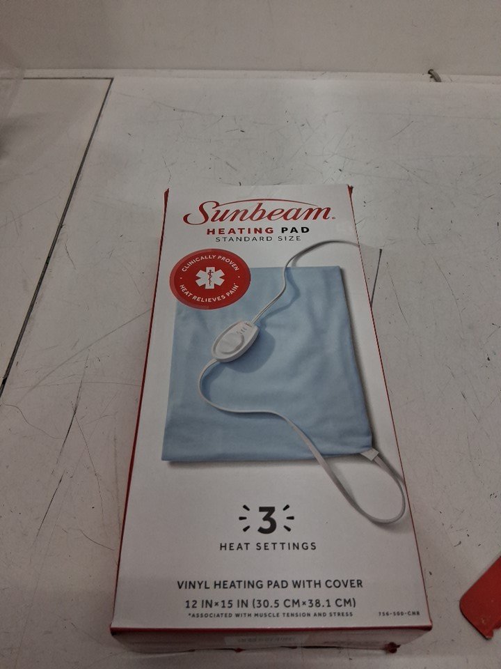SUNBEAM CLASSIC STANDARD SIZE HEATING PAD WITH 3 HEAT SETTINGS - 12"x15" - blue (MODEL: 756-500-CNR)