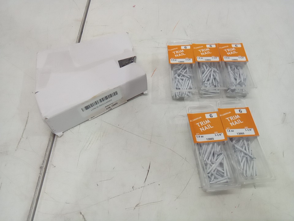 5 White Aluminum Trim Flat Head Nails - 1-1/4" - white - (model: 13065)