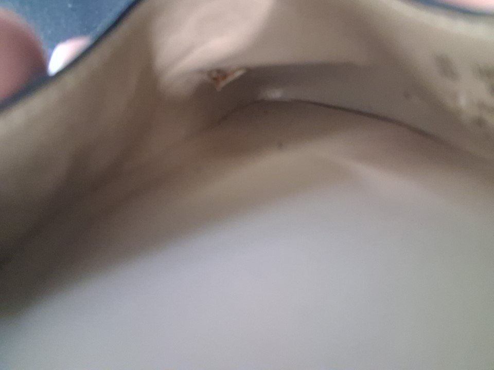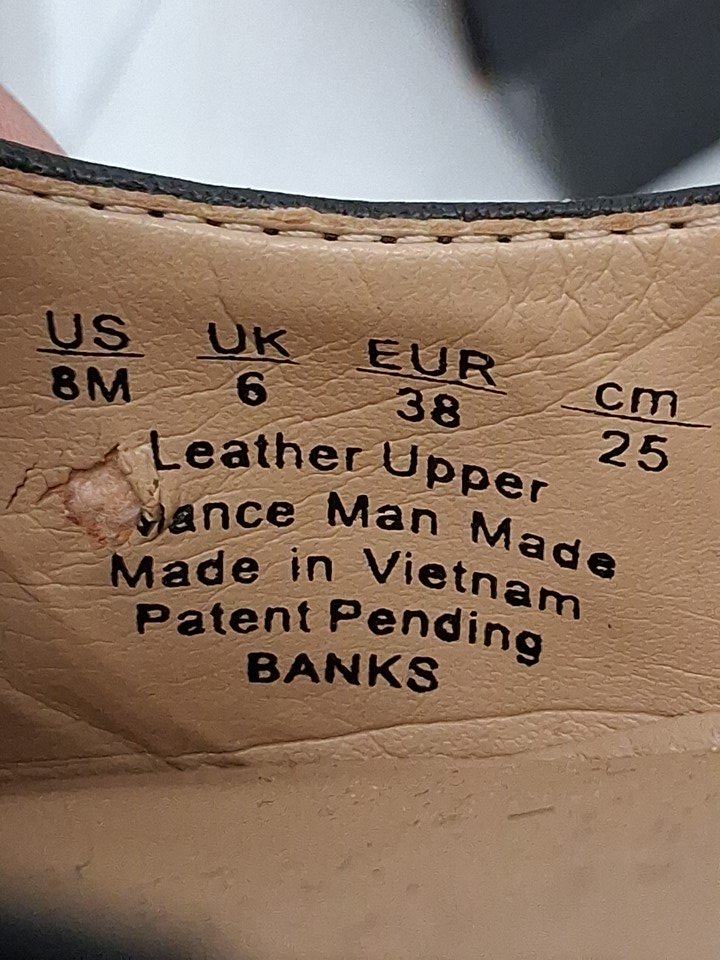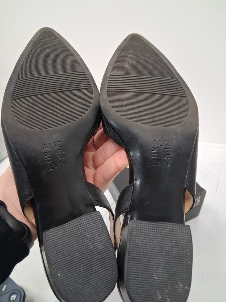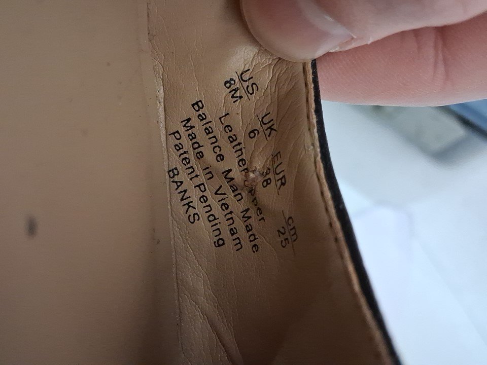 Dirt/wear on bottoms of shoes from prior use- there is a small rip on both shoes on the outside near the info (pictured) and down near the toes inside the shoe (Difficult to get a photo)