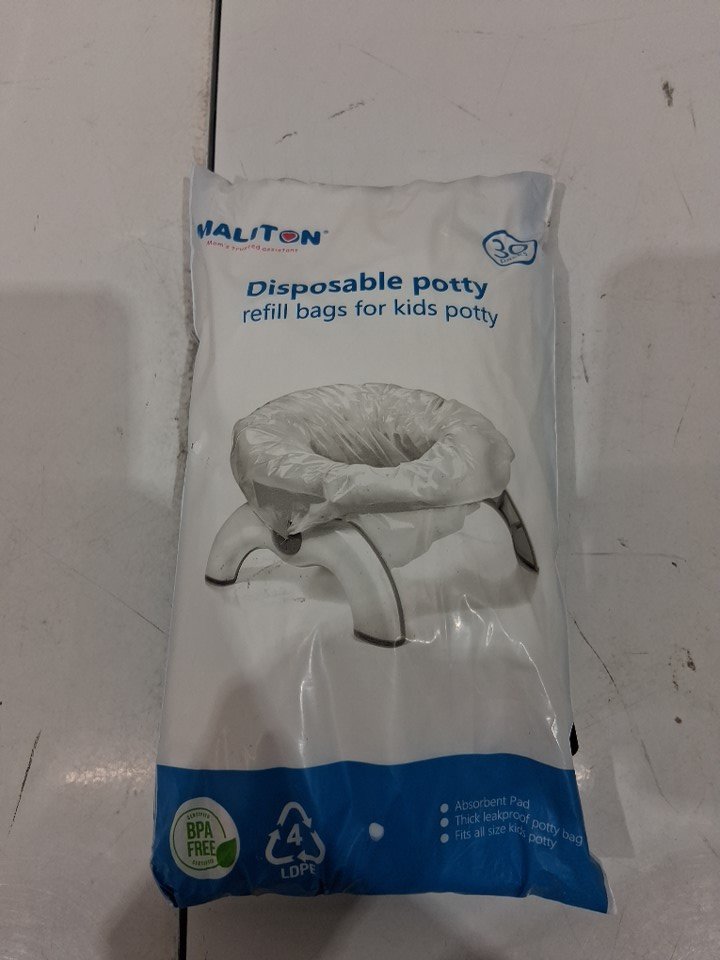 30PK MALITON Disposable Potty TRAINING Bags for Travel - FitS Most Kids Portable PottyS - WHITE (MODEL: PTB03)