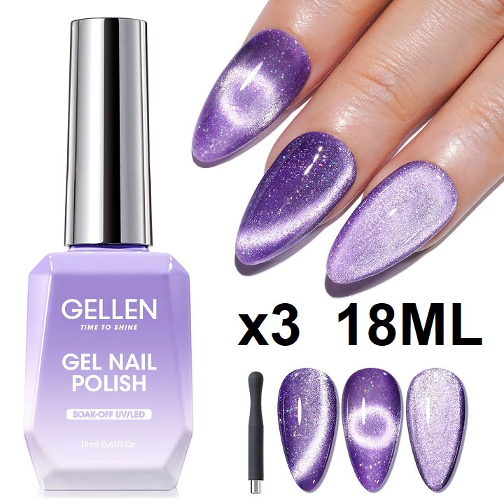 3 GELLEN CAT EYE GEL NAIL POLISH - 18ML EACH - PURPLE M138