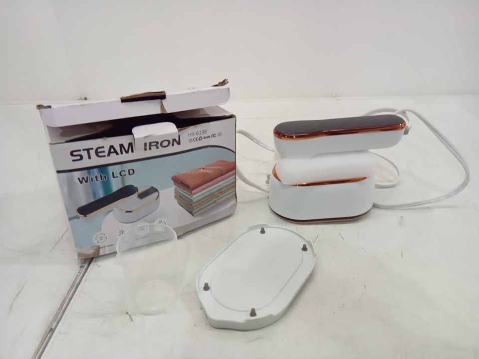 HONGTU ROTATING HANDLE ELECTRIC FOLDABLE HANDHELD MINI TRAVEL SIZE 2-IN-1 STEAM IRON with lcd -100ML - WHITE/GOLD (MODEL: HX-6198)
