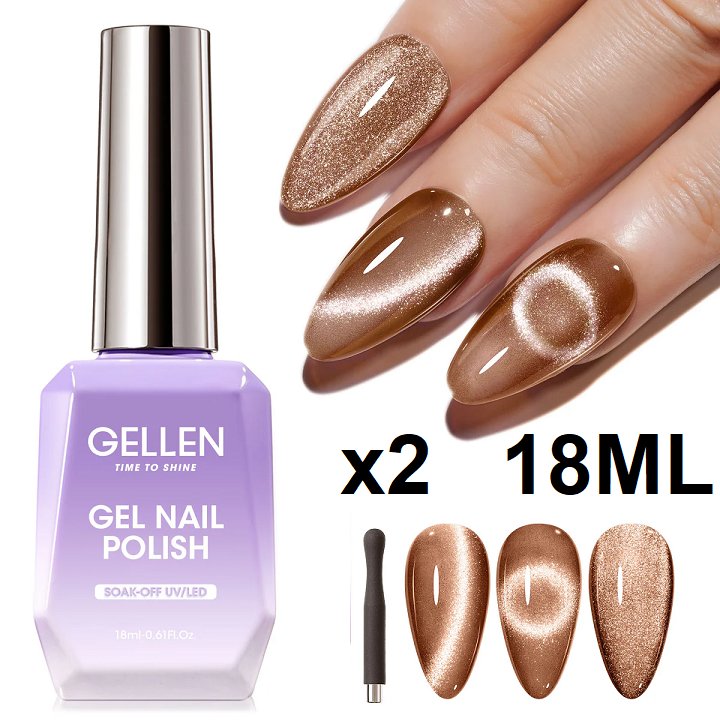 2 GELLEN GEL NAIL POLISH CAT EYE - 18ML EACH - BROWN 182