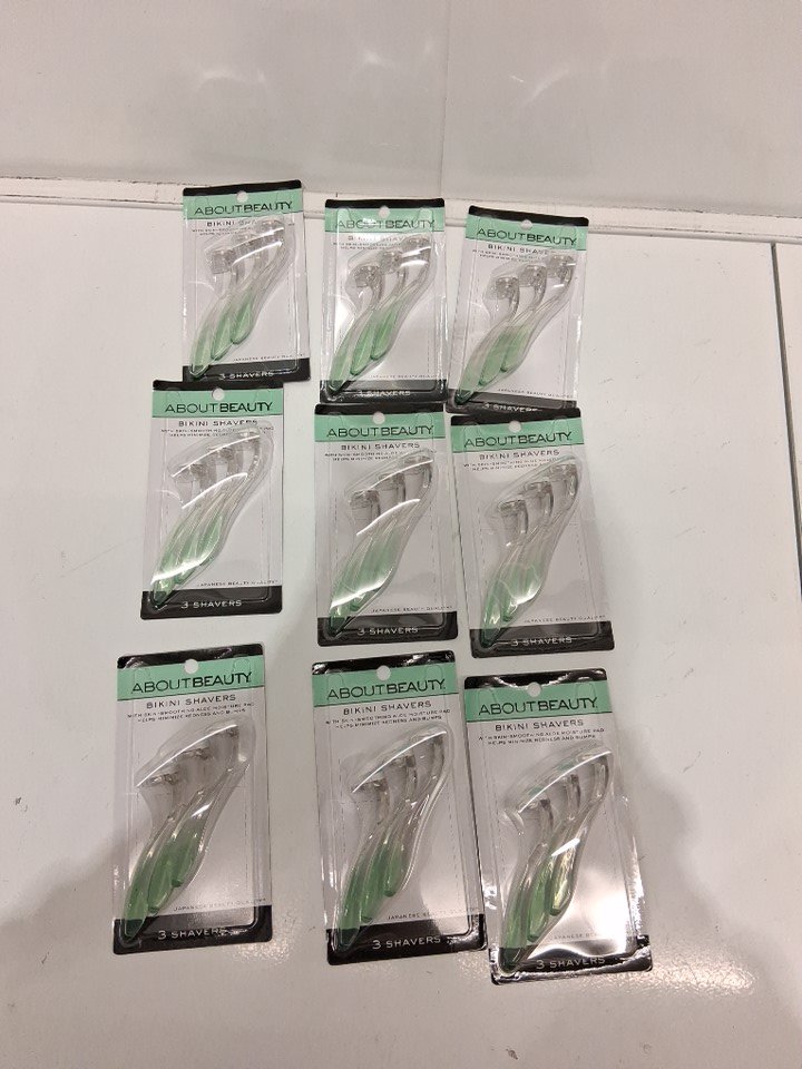 9(3PK) ABOUT BODY DISPOSIBLE BIKINI SHAVERS - CLEAR/GREEN (18 TOTAL)