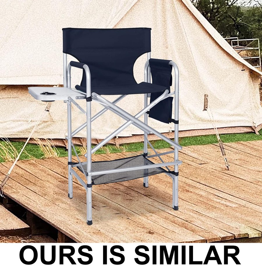 Foldable Tall Directors Chair Outdoor Camping Chair Makeup Artist Chair with Side Table & Pockets