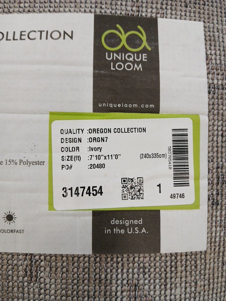 UNIQUE LOOM OREGON COLLECTION AREA RUG - 7FT 10" X 11FT - GREY/BEIGE (STYLE: 3147454)
