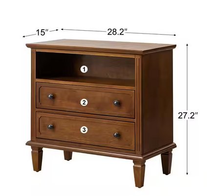 JAYDEN CREATIONS JUIIEN MID-CENTURY NIGHTSTANDS WITH USB PORTS - 15" x 27" x 28" - WALNUT (MODEL: NSJY0539-WALNUT)