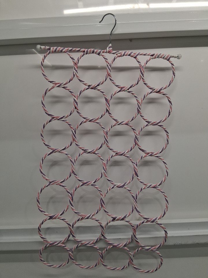 28 Hoops Hanger Organizer and Space Saver for Scarfs, Ties and Socks - Pink/White