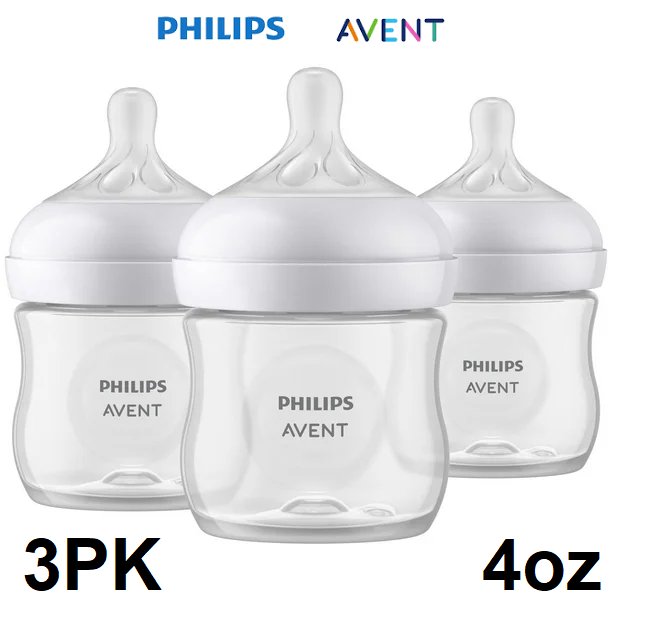 3PK PHILIPS AVENT NATURAL plastic MADE WIDE-NECK BABY BOTTLE - 4OZ - 0M+