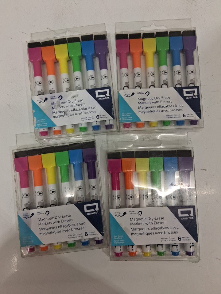 4 (6PK) Quartet Magnetic Fine Point Mini Dry Erase Whiteboard MARKERS with eraser lids - blue / purple / green / orange / pink / yellow
