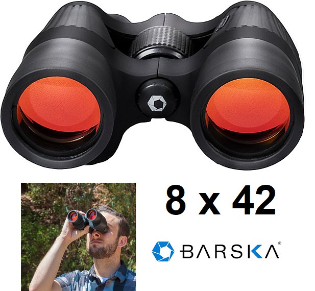 Barska x-trail precision Waterproof Binoculars with case - 8x42 /378ft - black/orange (Model: AB10174)